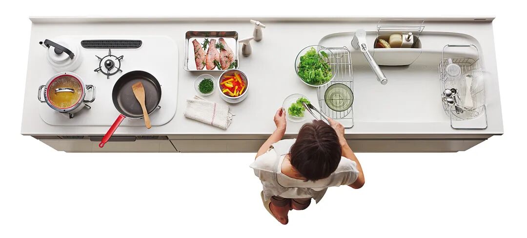 虽说中岛在中国家庭里的出镜率也越来越高,但日本主妇的厨房中岛,和我们的有点儿不一样: