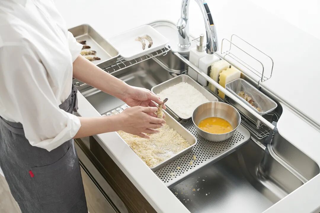 在国内,厨房更喜欢用双盆,而日本厨房水槽普遍只用单槽,以前小筑也觉得用双盆分开实用,体验过之后却发现,大单槽使用效果更顺手!