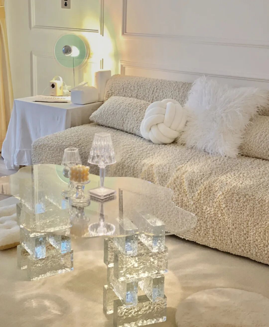 不仅仅是每个空间当中的使用,一些想要打造冰感设计的同样可以利用玻璃砖来达成。玻璃砖茶几、玻璃砖床头柜、玻璃砖边几、玻璃砖吧台.....都超级有感觉,重点是好看还便宜。