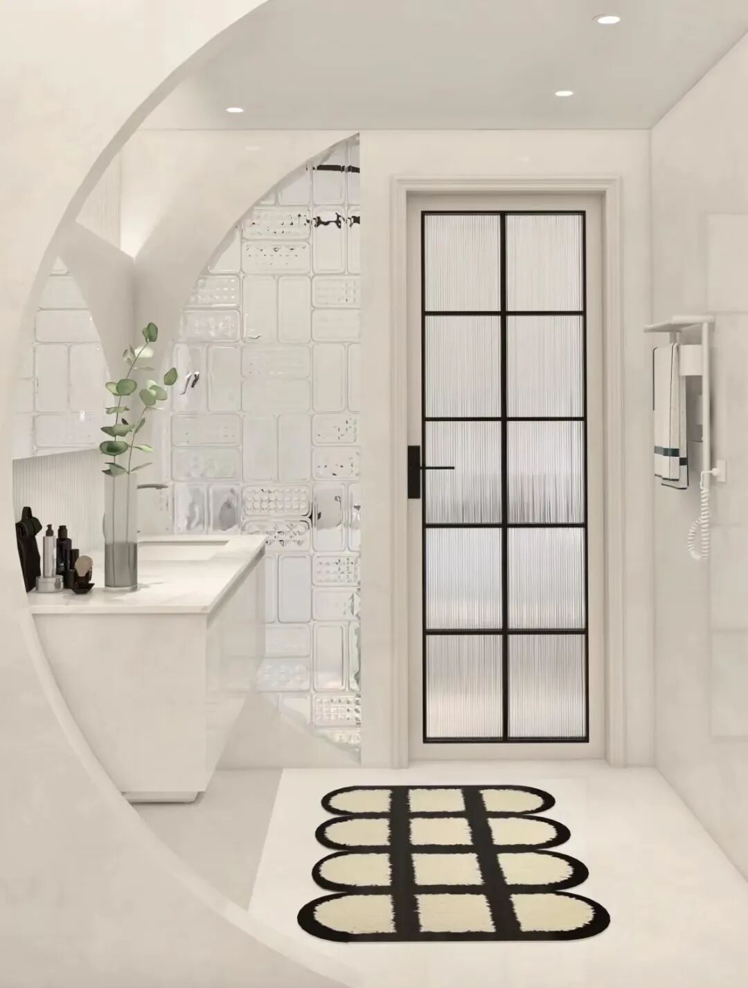 玻璃砖可以说是卫生间的救星了,玻璃砖防水,防潮,易清洗,兼顾隐私,用来做干湿分离的隔断显然是个不错的选择,可以很好地解决暗卫问题。