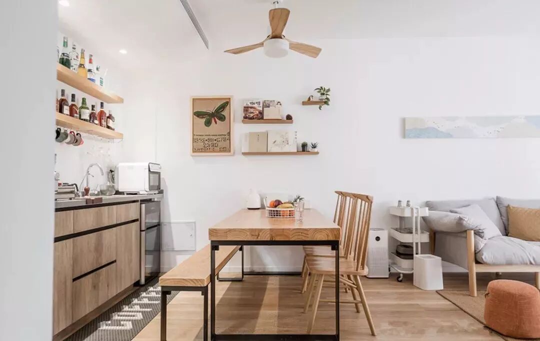 如果大家再装修,真的建议给餐厅处装上吊扇灯,不用吃饭稍微有点热就开空调,也省去了落地扇占空间的麻烦。
