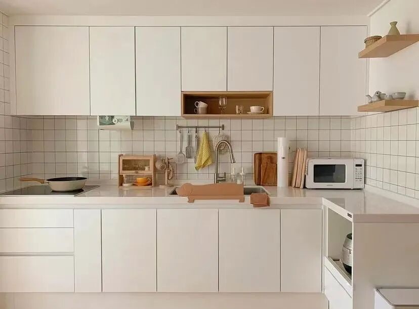 当初厨房选柜门,老婆执意要做光面的,我觉得颜值一般还反对过,入住两年才发现:再好看的柜门,都抵不住岁月的痕迹,很多人选柜门图好看,什么肤感膜、磨砂面儿,时间久了,发现污渍残留难擦拭,都是一个后悔。