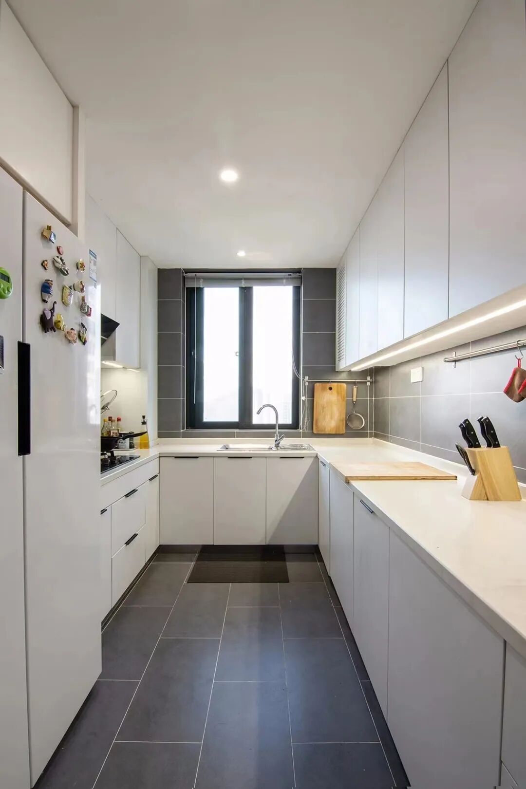 而拉手,除了磕碰人、积累脏污,也没有别的用处,隐形拉手就可将这些问题都规避掉。