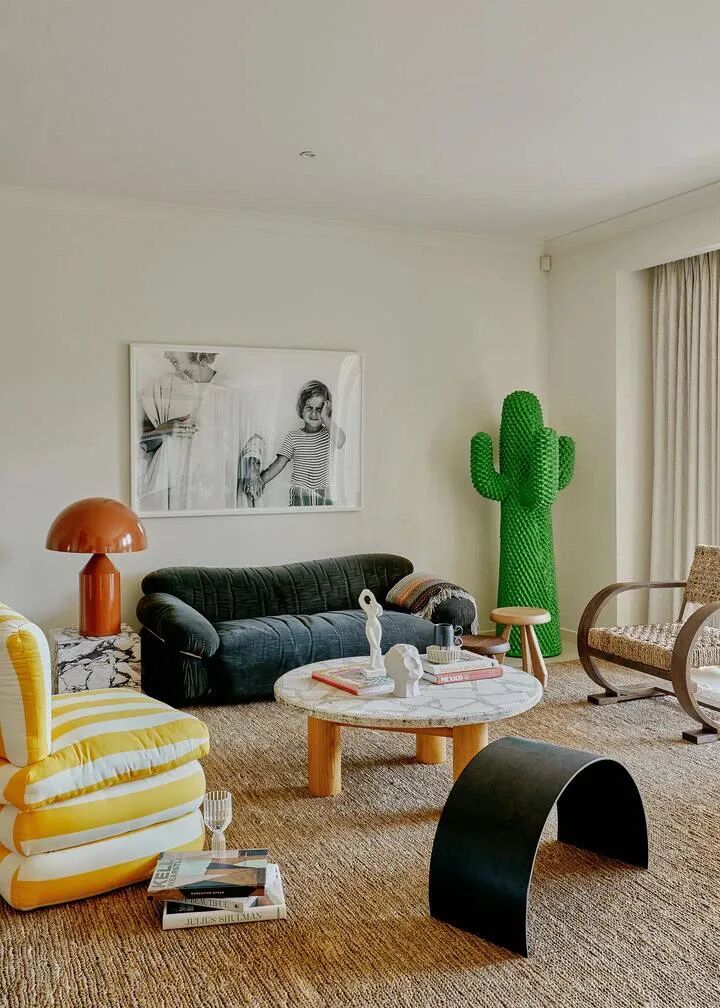 简约大气的壁画、吸睛趣味的地毯,不管多抓马的软装都可以无压力搭配白墙,包裹出有故事的居住空间。