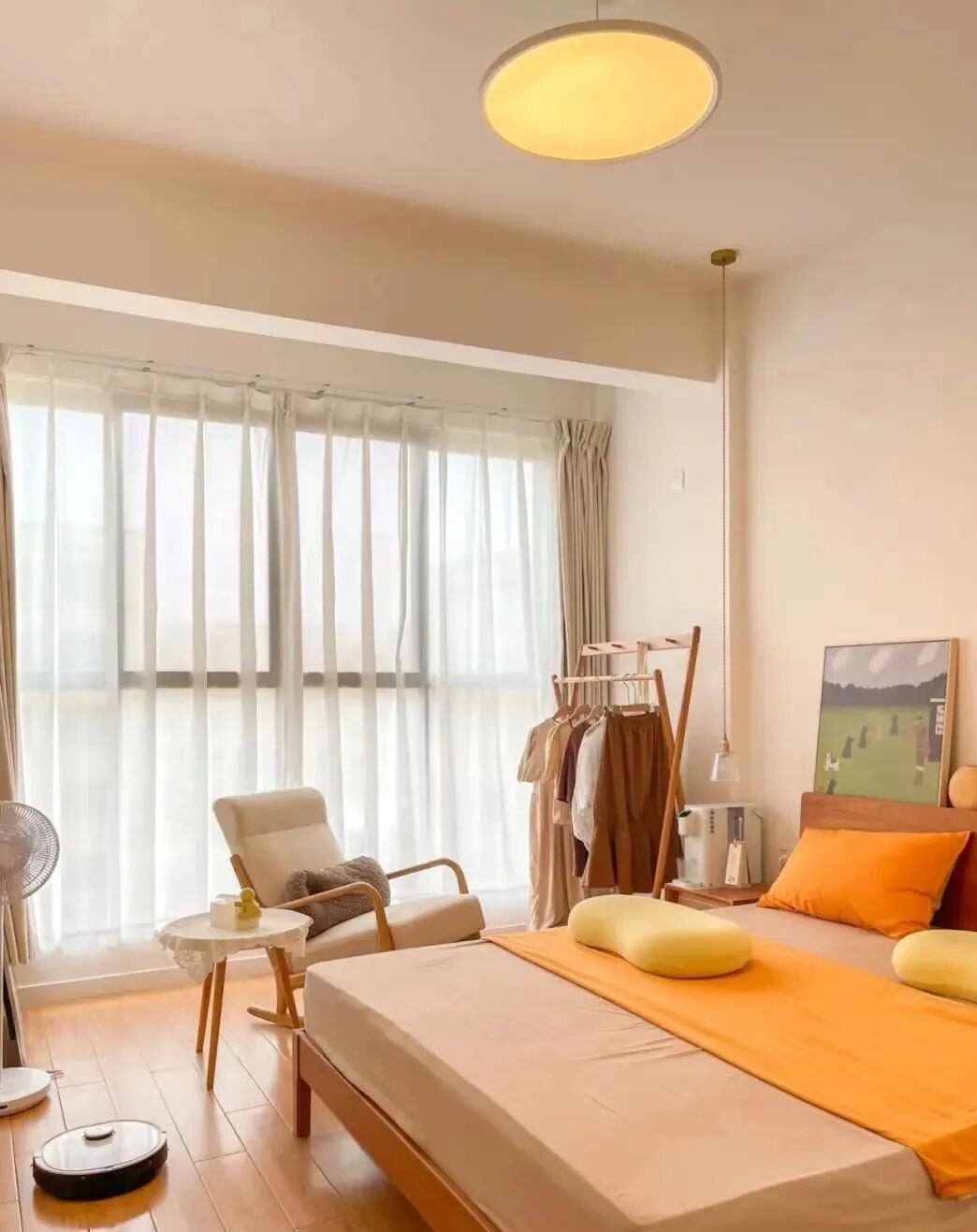 大白墙打底,搭配暖色灯光和家具,就是风靡小红书的“奶油风”。简洁的墙面在软装烘托下熠熠生辉,进门就能拥抱温馨惬意的舒适感。