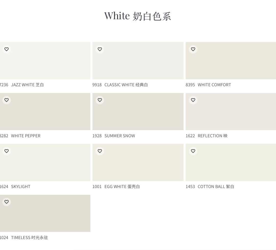和人的肤色一样,白墙也有“冷暖”之分。事实上,在许多品牌色卡里,白色可能有几百上千种:象牙白、乳白色、月牙白、雪山白、古董白、玉白、米白……细微的色温色调变化,带来截然不同的空间感受。