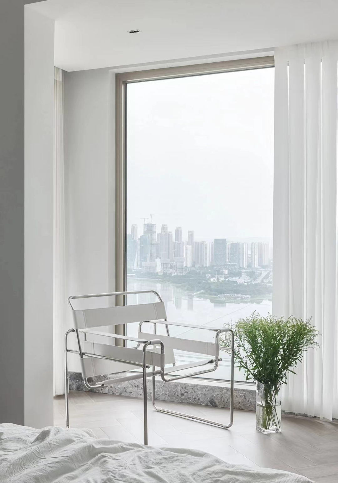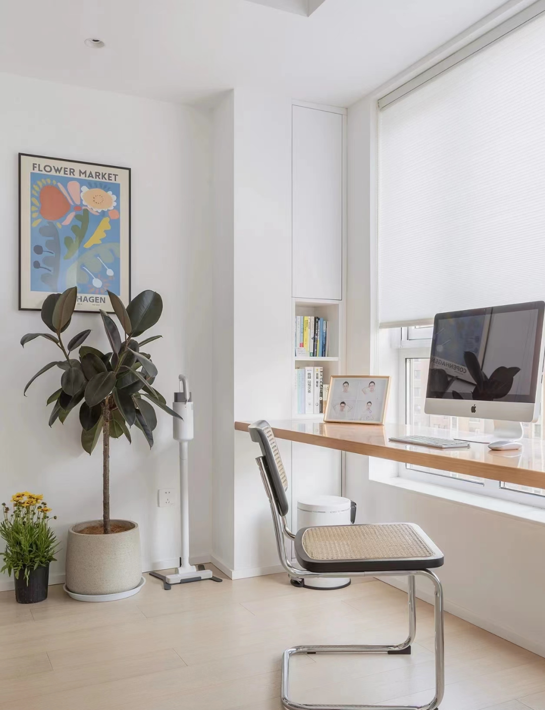 冷白搭配温暖的木色地板和家具,稍微一中和,空间的温馨感和柔和度瞬间up up。