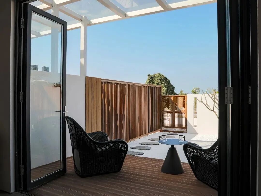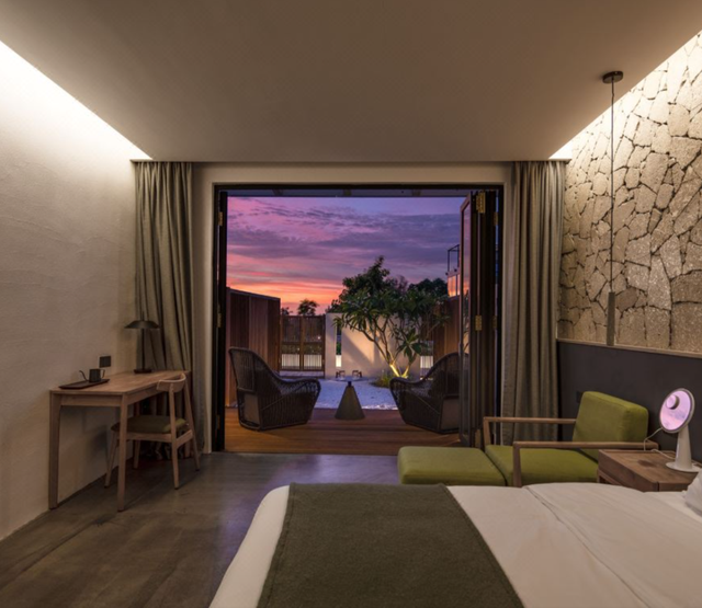 每一个房间都带有独立的院落,相对比较独立,不过,整体3个房型,也绝对会让你面朝大海的浪漫,最重要的是如果看日落,院内就可以,大约时间是下午6点半-7点半左右,这就是小庭院绝对的优势。