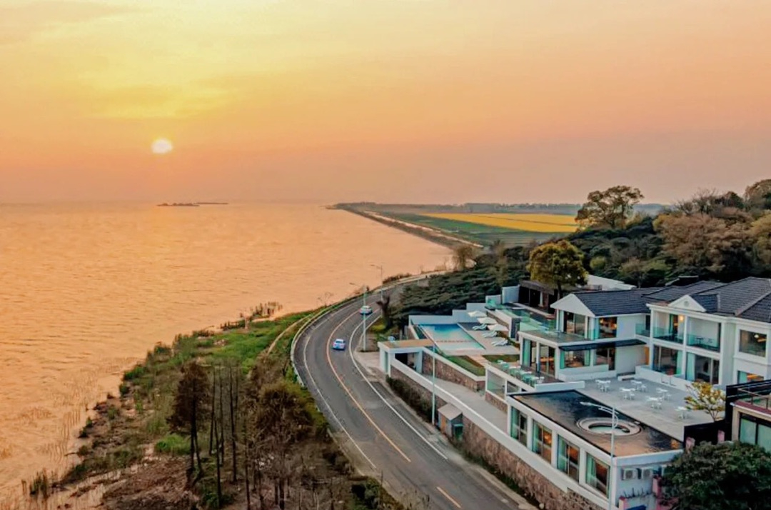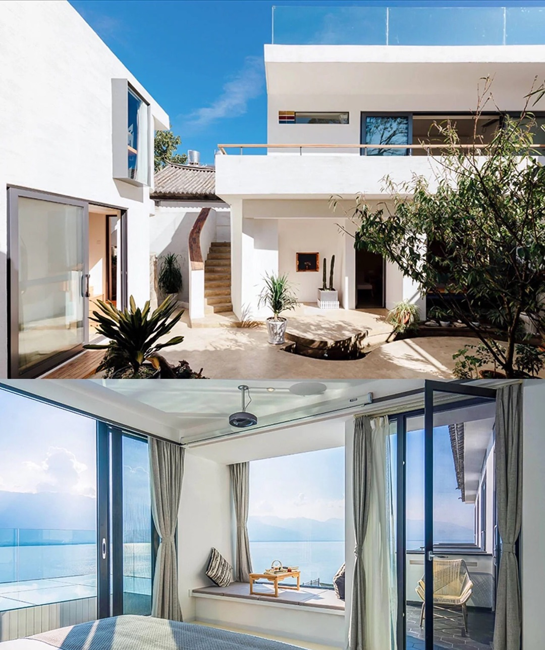 苏州西山岛,有“小济州岛”之称的苏州水庐民宿,在山湖之间,是太湖边不可多得的好风景,将自然、湖景融为一体;白墙黑瓦,大面积落地窗面朝湖景,自带一种无忧无虑,眼前皆是太湖美景。