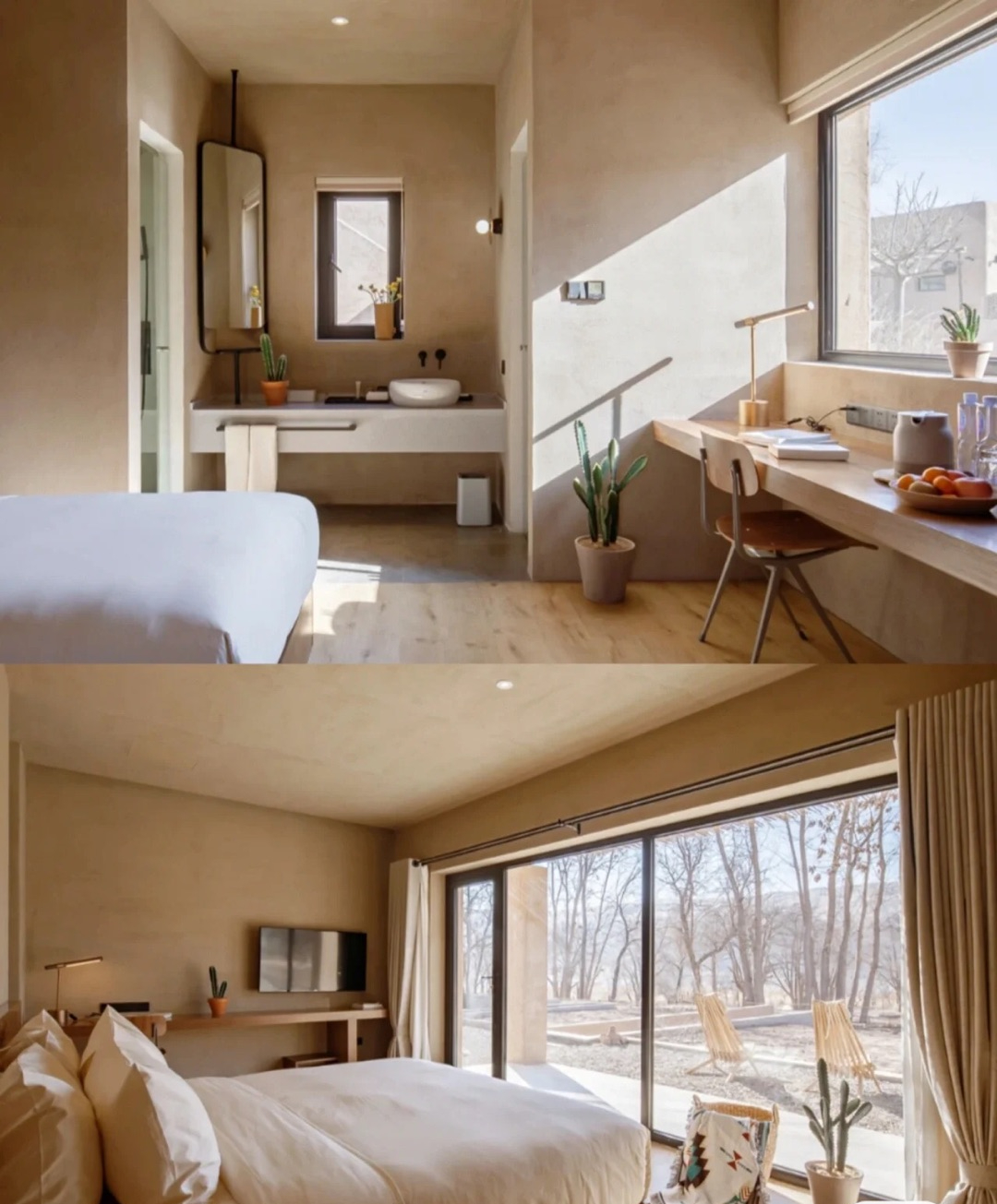 大乐之野:它是黄河宿集里区域最大的,而且每个房型都不一样,除了大落地窗之外,配套设置齐全,每户小庭院相通,重点是,拍摄取景地点超多。