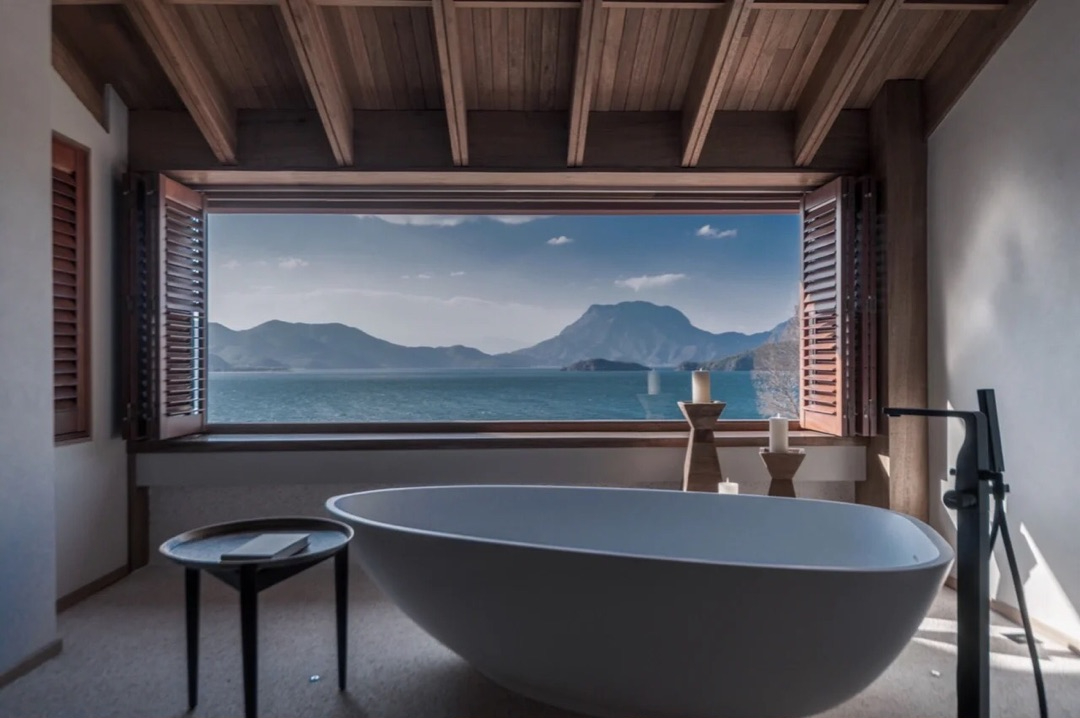 叙旧山海事坐落在泸沽湖格姆女神山正对面,非常有设计感的民宿,除了简侘寂的元素外,窗景会让你感受到烟火之外的神仙梦幻......
