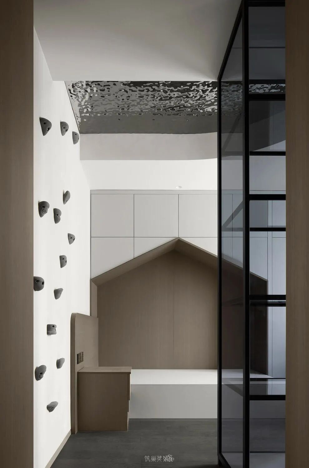 儿童房用新颖的材质和独特的形式打造了趣味十足的居住活动空间,墙壁上的攀岩设计独特又温馨,给孩子提供了充足的活动空间。