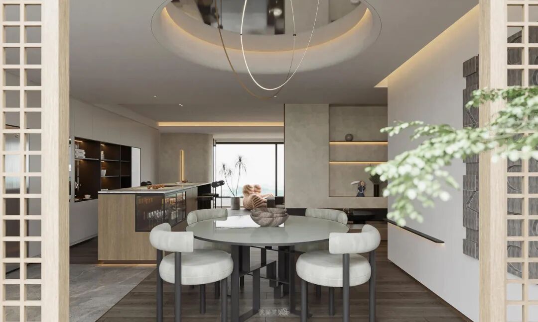 客餐结合的设计让整体空间更加灵动活跃,岛台加餐桌的设计开阔灵动。