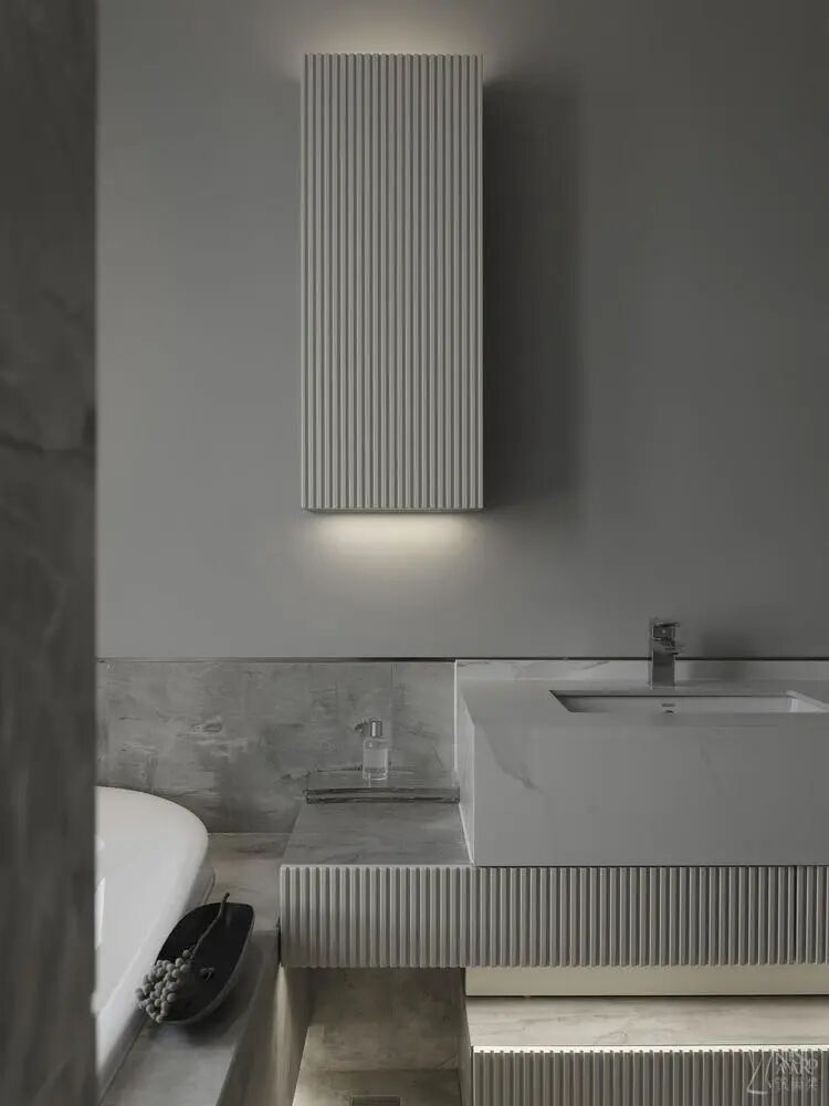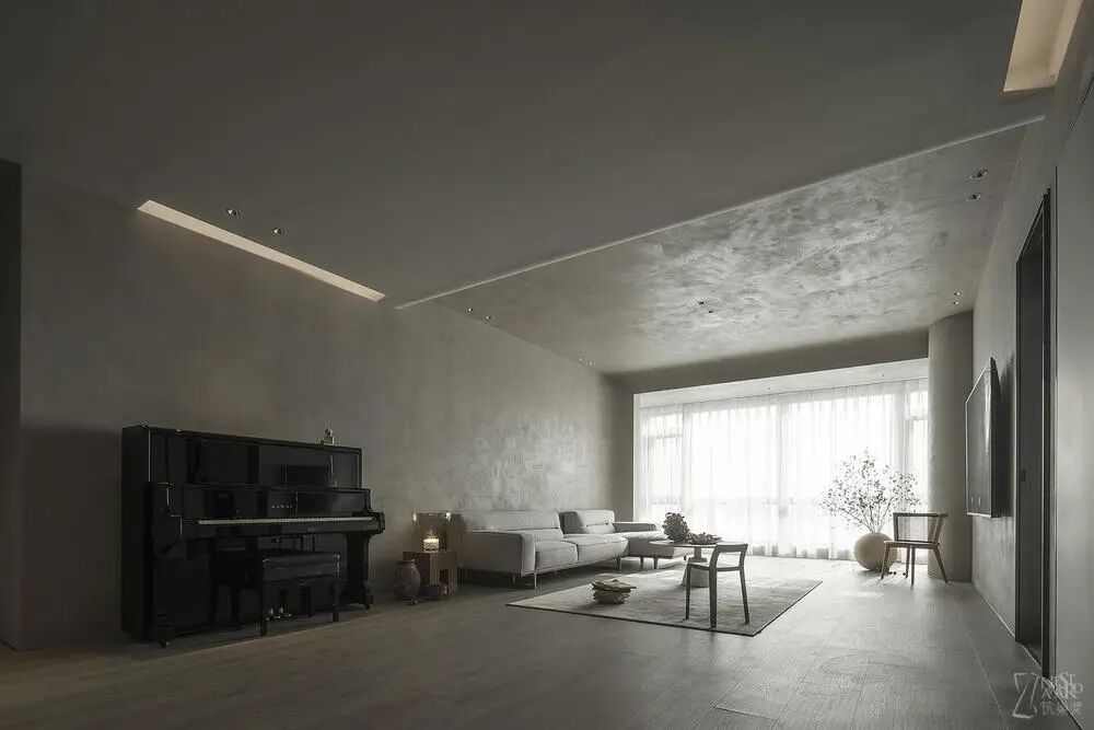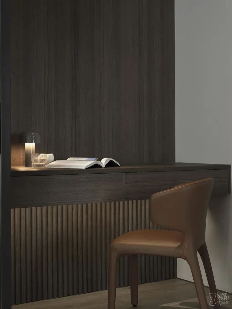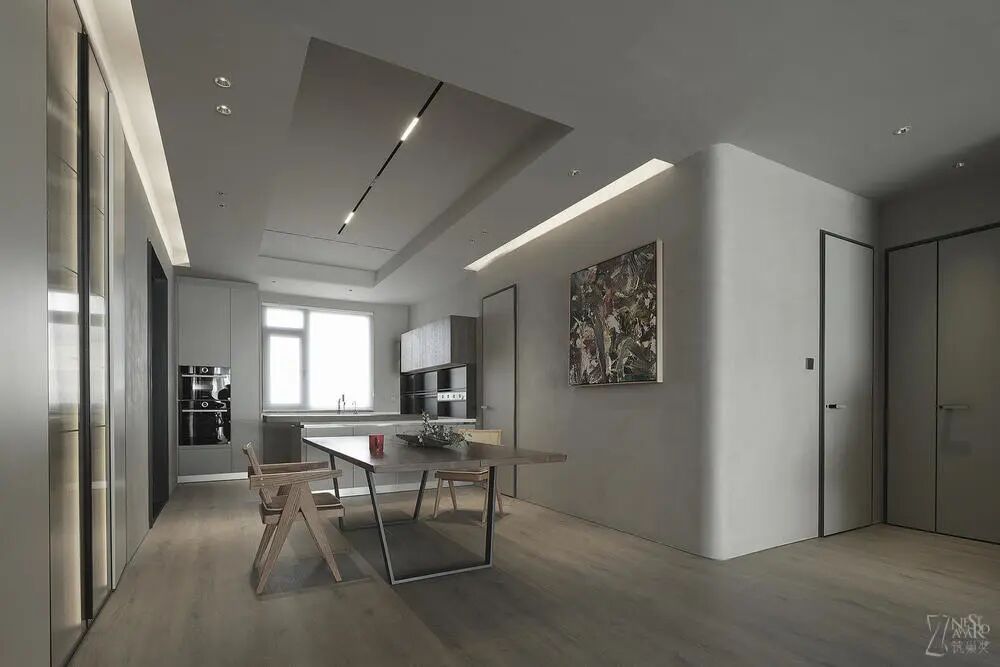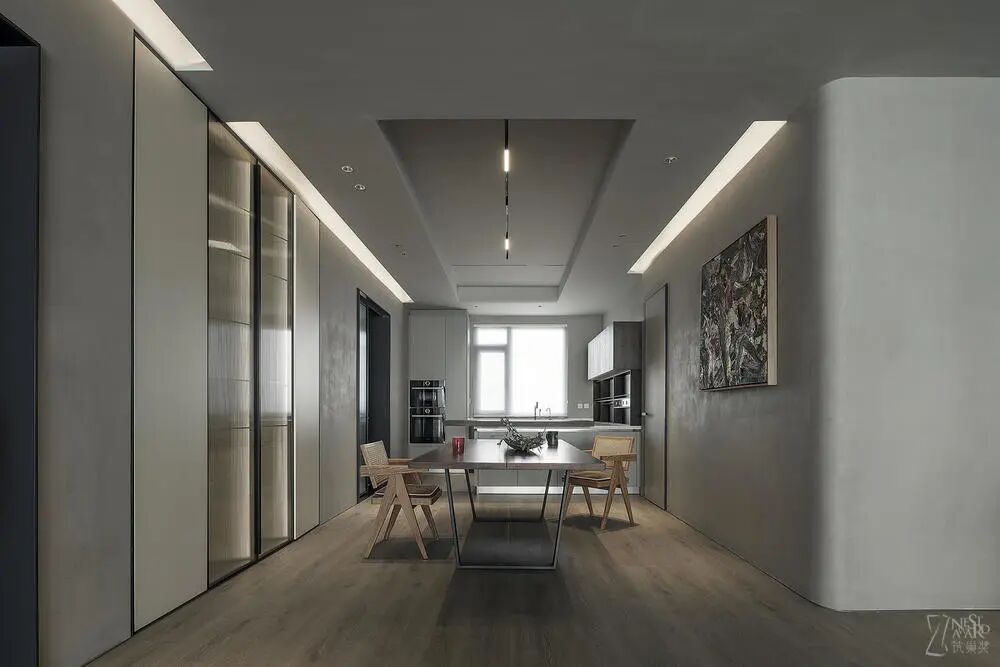 以不同材质的搭配,巧妙的材料收口手法,突出空间的精致,同时在空间中注重光影效果的表达。