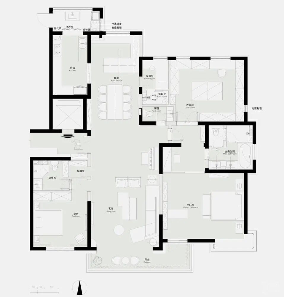 本案位于辽宁沈阳,面积235㎡。业主是90后海归派,家庭成员除小两口外还有一只叫“哈啤”四岁的边牧。夫妻俩追求惬意的生活仪式感,喜欢自然气息。