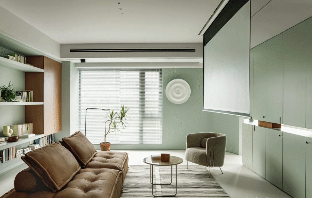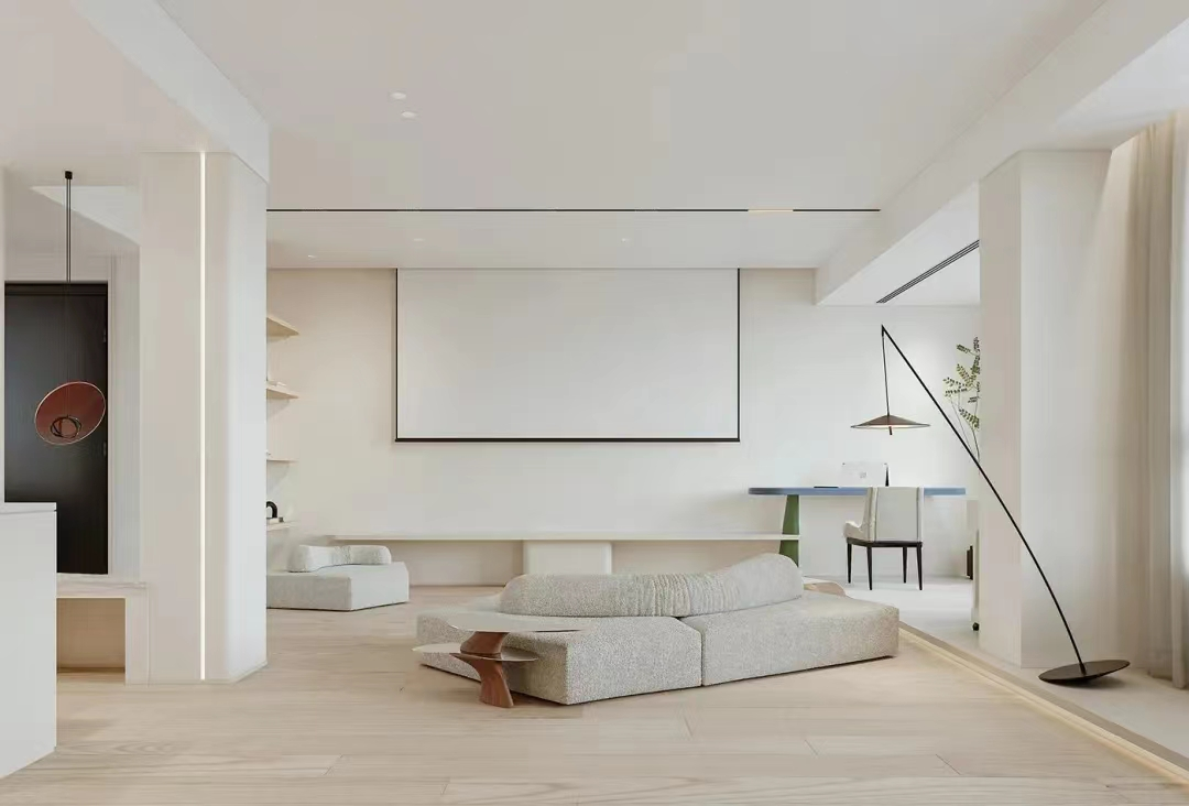 省去装电视背景墙的成本,直接装投影,不管是大白墙还是还做成你需要的柜体,用来收纳,是一举两得的设计。