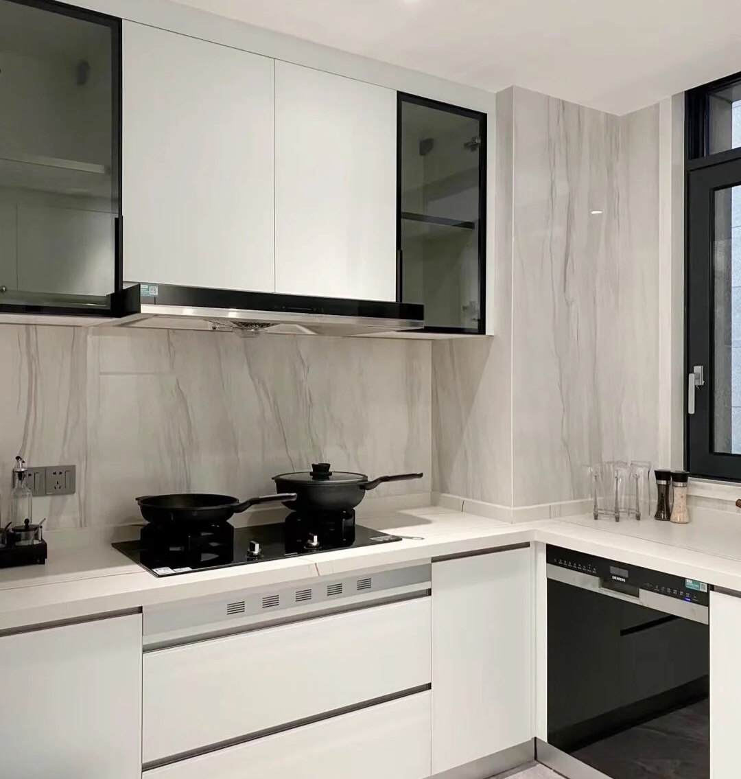 蜂窝大板可任意剪裁,整体性更强,缝隙少,确实会让顶面更为大气,也不压抑,但是,好看归好看,如果你家厨房本来就不大,用蜂窝大板也没啥必要,检修的时候还不方便。