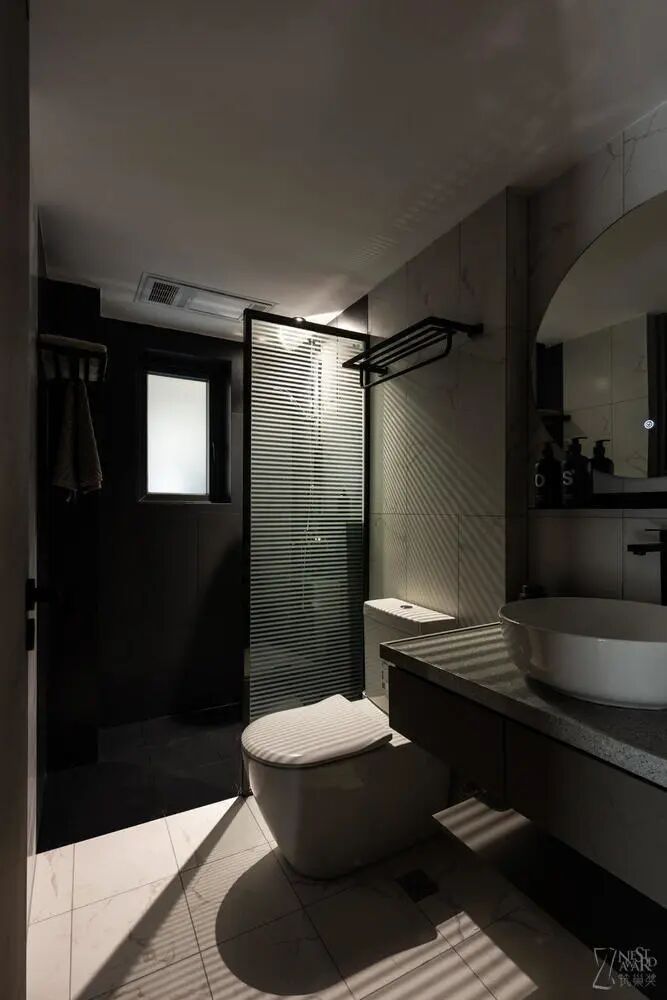 卫生间使用玻璃材质做隔断,保证干湿分区,但不遮挡光源,空间功能紧凑却不拥挤。
