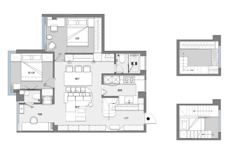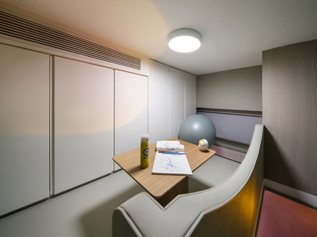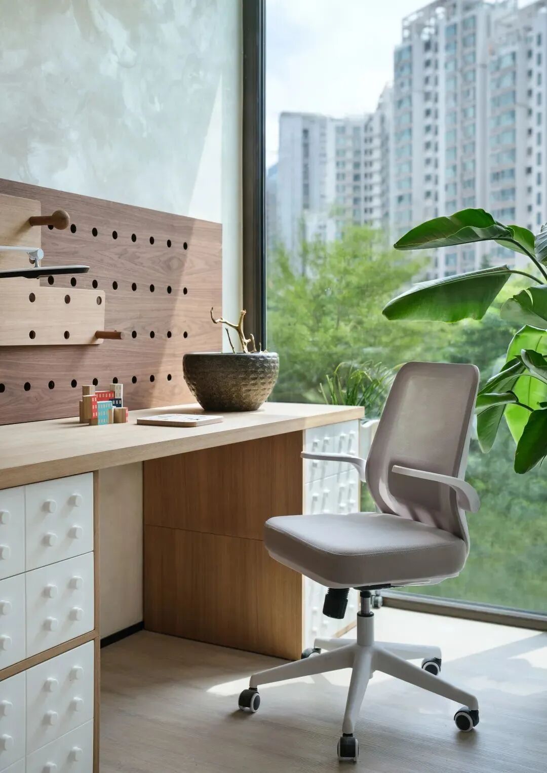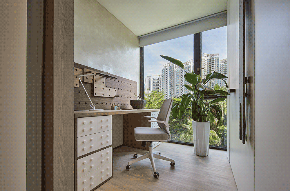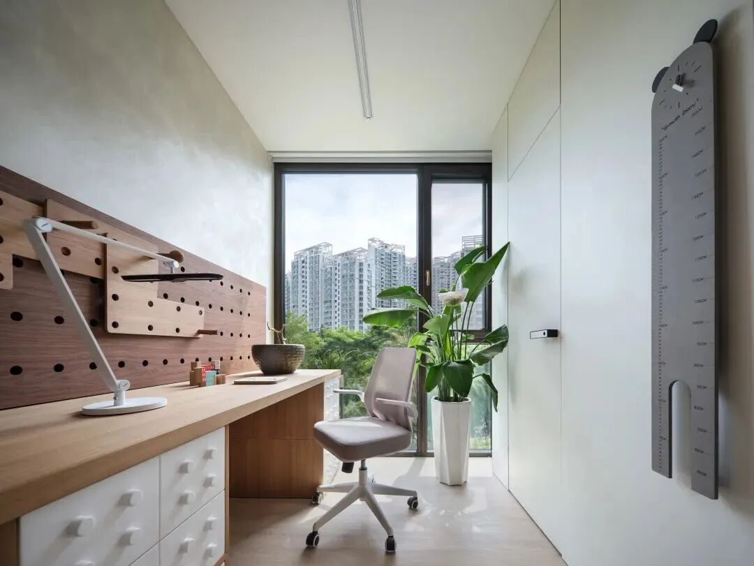 考虑到实用性,书桌也设计成了可变形式,如果爷爷奶奶来,这里就能充当一间临时客房。