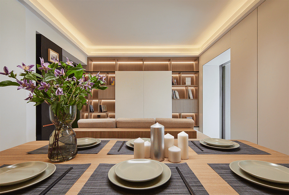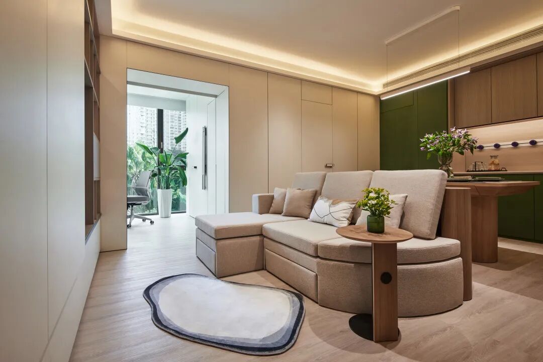 考虑到三世同堂的居住需求,沙发也可以拉开变成一张床,午休或者留宿都可以应付得来。