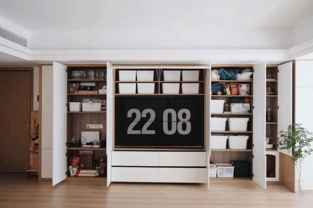 客厅的“墙墙联合”瞬间让储物空间加倍!东西随便放在哪,都是合情合理~