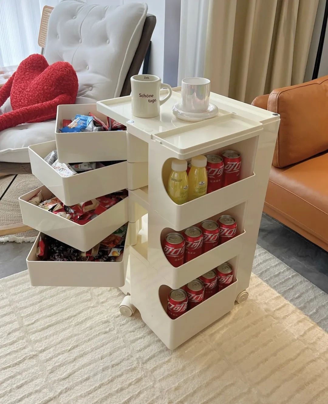 在北欧,几乎每户人家都会有几个小推车。它很小,可以补充固定收纳家具以外的收纳需求,方便移动,随用随走。近几年逐渐流行起来,不少家庭都在使用。