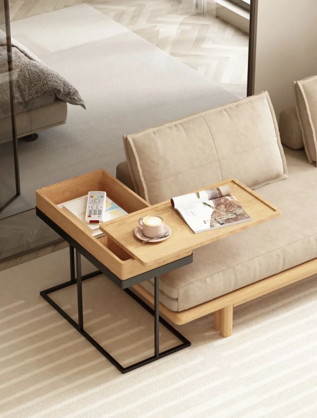 要想高效的利用空间,边几可以说是节省空间的佼佼者。边几一般是放在客厅、沙发之间,用来放茶水、遥控器、杂志等随手杂物的,也有人会用边几来替代床头柜,可以根据款式和尺寸来灵活调整的。