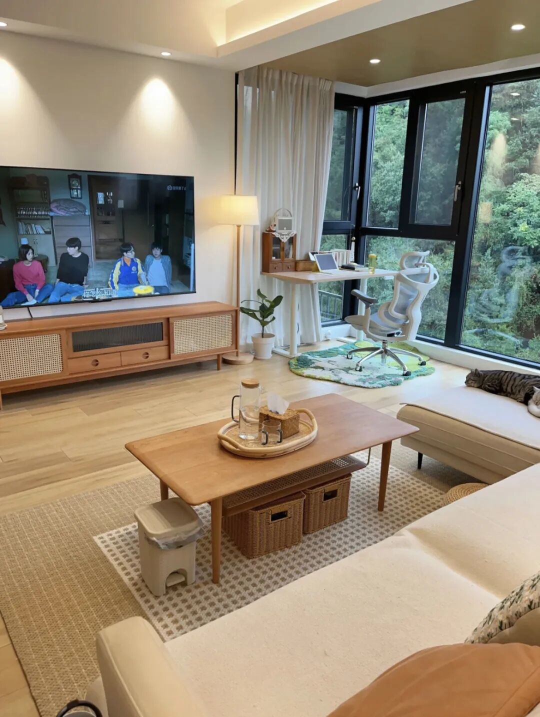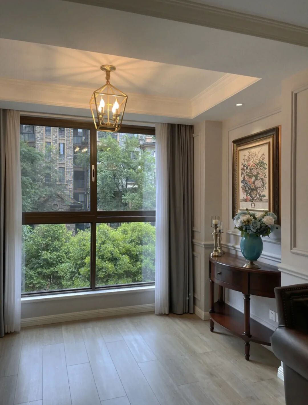 网友@一颗糖不够甜家在威海,去年家里开始装修,原本想封阳台做整块落地窗,但是作为设计师的嫂子坚决不同意。说虽然颜值高,但是18层楼层高,而且海风也比较大,整块落地窗会比较危险,而且风一吹会有响动。最后家里妥协了。