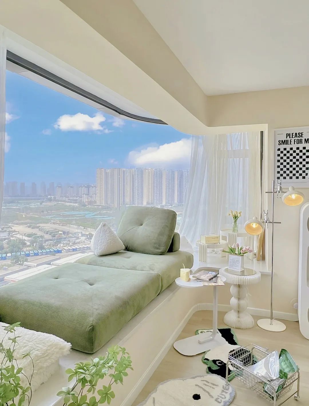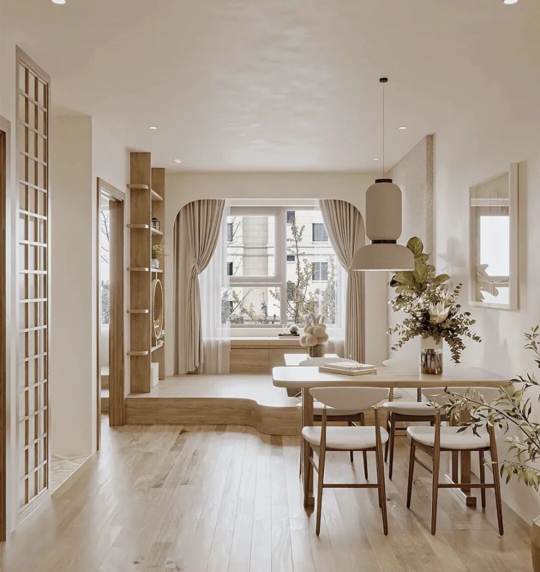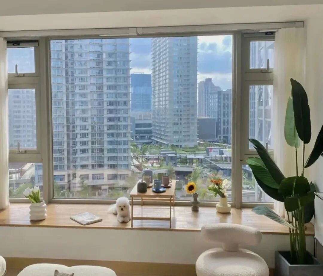 也有不少人称其为半落地窗,整面窗户通透规整,飘窗位置可以做延展,拓宽横截面,拥有更大的可操作面积。