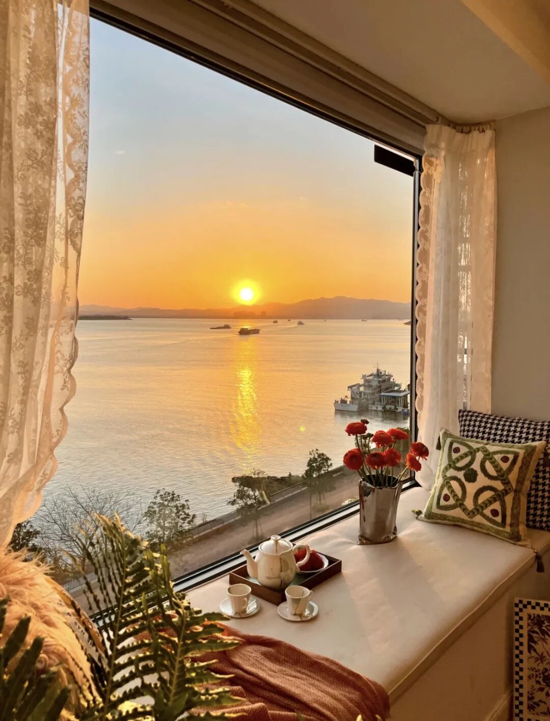 落地窗的高度会在2200mm左右,当出现半落地的情况,大多将飘窗正对园景或者江景,作为观景场所,其在室内设计中不用多做改动,只需要按照屋内整体风格装成自己喜欢的样子就可以。