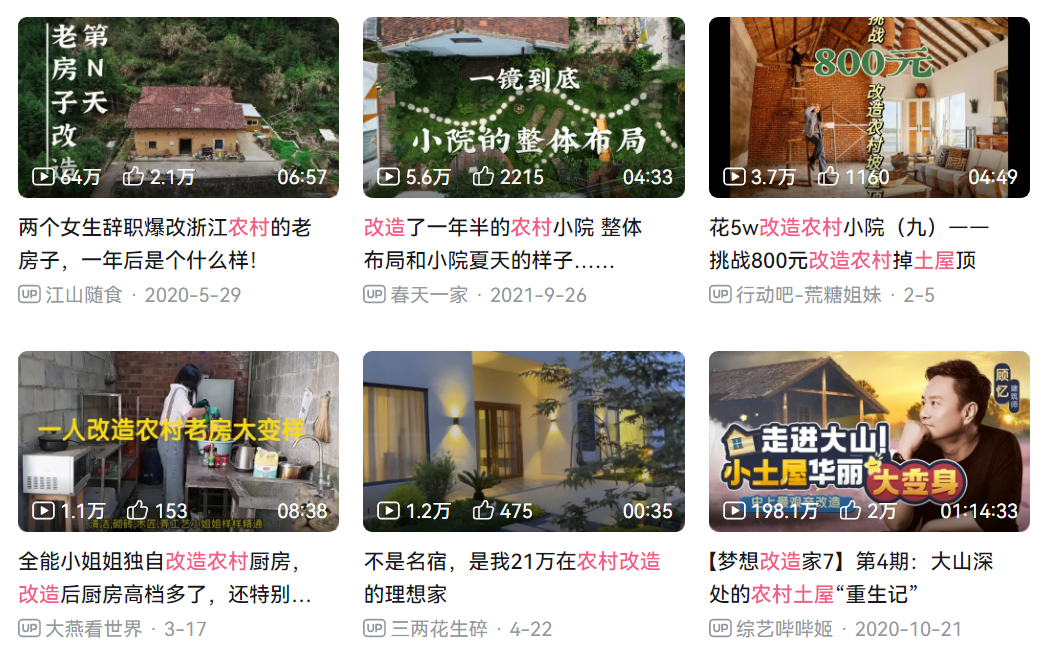 围观完各大平台的改造视频,不难发现:撇开财富自由的野居青年不谈,回乡爆改的野居青年大多都是依靠自媒体存活的自由职业者,放下一切选择回乡多半也不是为了养老。