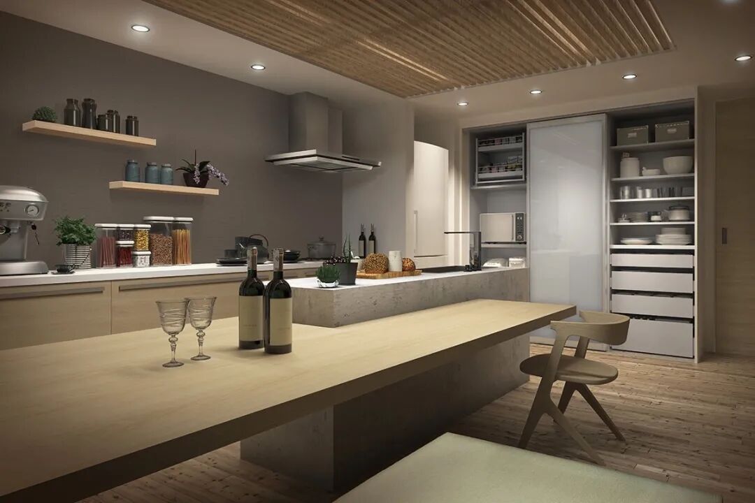 厨房空间设计上,通常会按照做饭“取、洗、切、烹”的顺序来分隔空间,这样即使在比较小的空间也能设计出高效便捷的厨房。