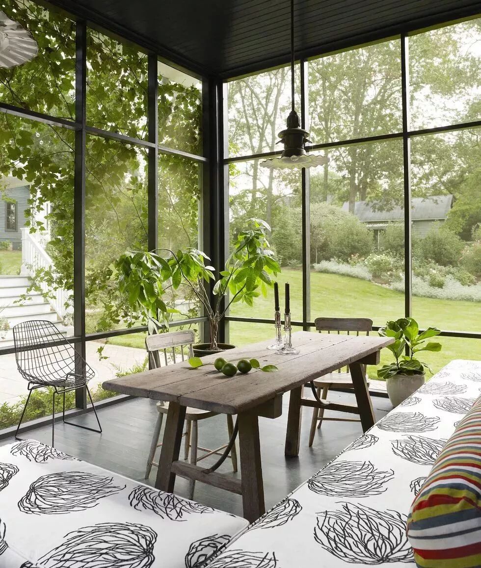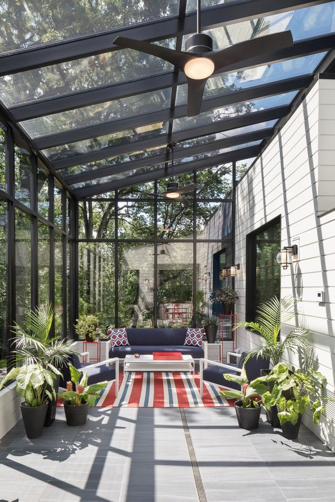 ③夏日,阳光房除了热,还有就是闷,所以阳光房一定要做好通风,可以在顶部开天窗,当然光在顶部开天窗是不够的,想要达到通风的效果,必须配合侧面开窗,才能把热量输送出去。
