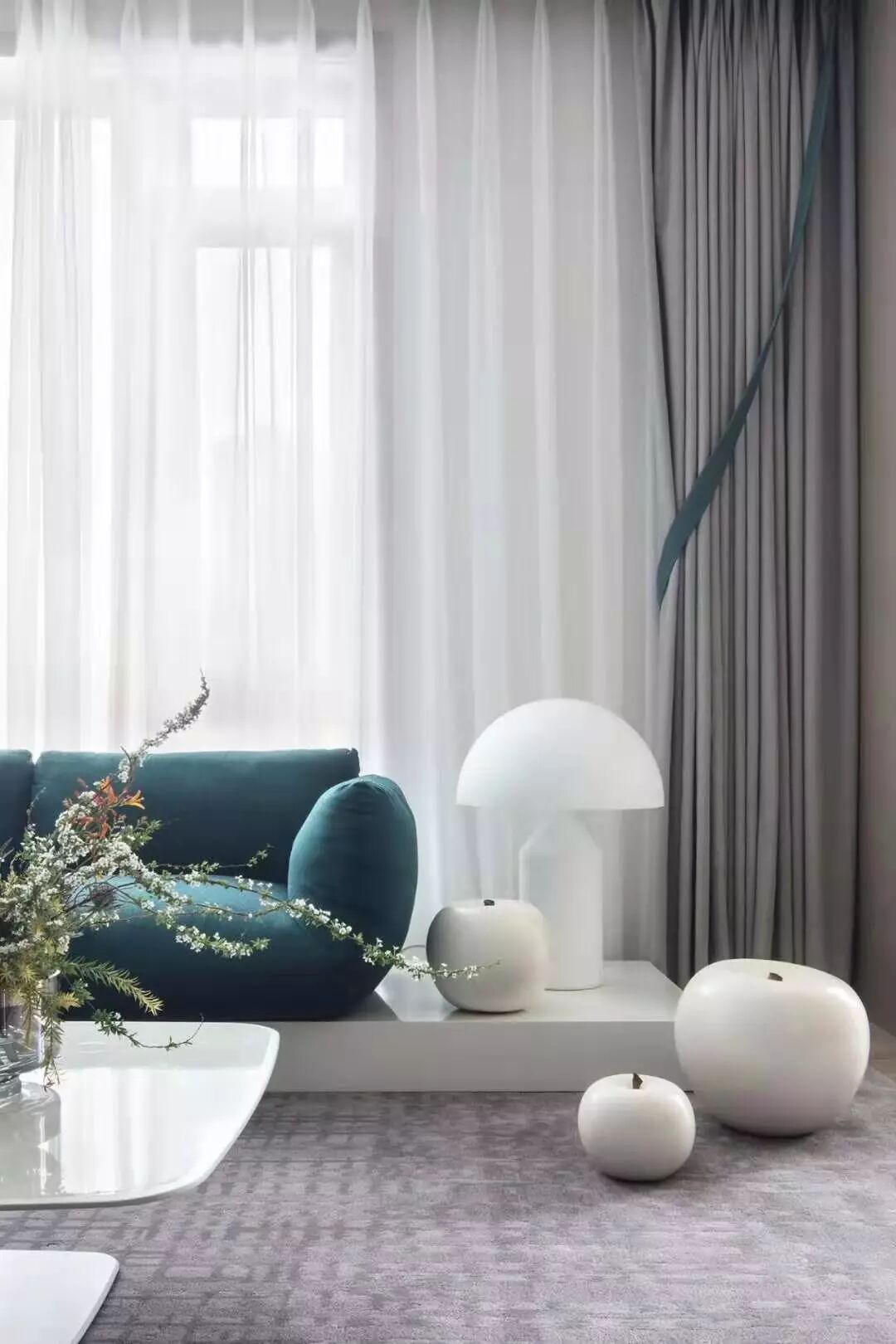 客厅连接阳台的话,将阳台的部分地面抬高做地台,设计出一个独立的休闲区。夫妻两个一抬眼就能看到彼此,互不打扰又相互陪伴,没有什么比这种生活状态更幸福的事了。