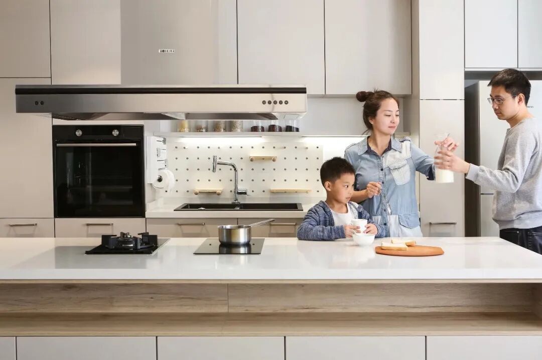 在厨房社交也未尝不可,如果岛台面积足够,邀请朋友一起参与到烹饪的过程中,一个大岛台可以让大家各显身手。