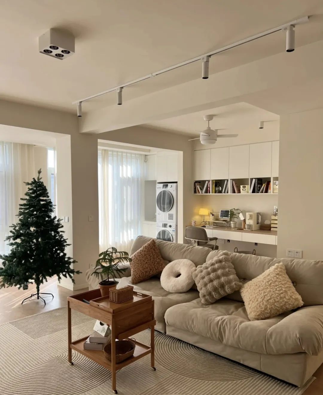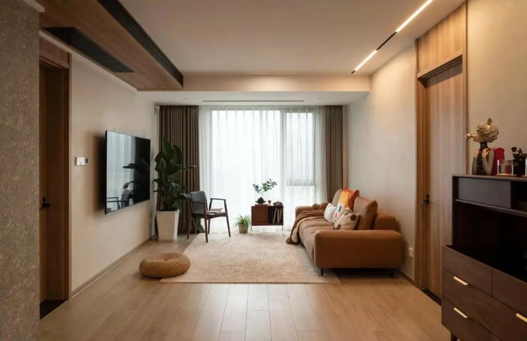 如果沙发舍弃加长的躺位改为三人位,再去掉茶几,客厅就会显得宽敞许多,对于有孩子的家庭来说也非常方便,孩子活动的空间更大,安全性更好。