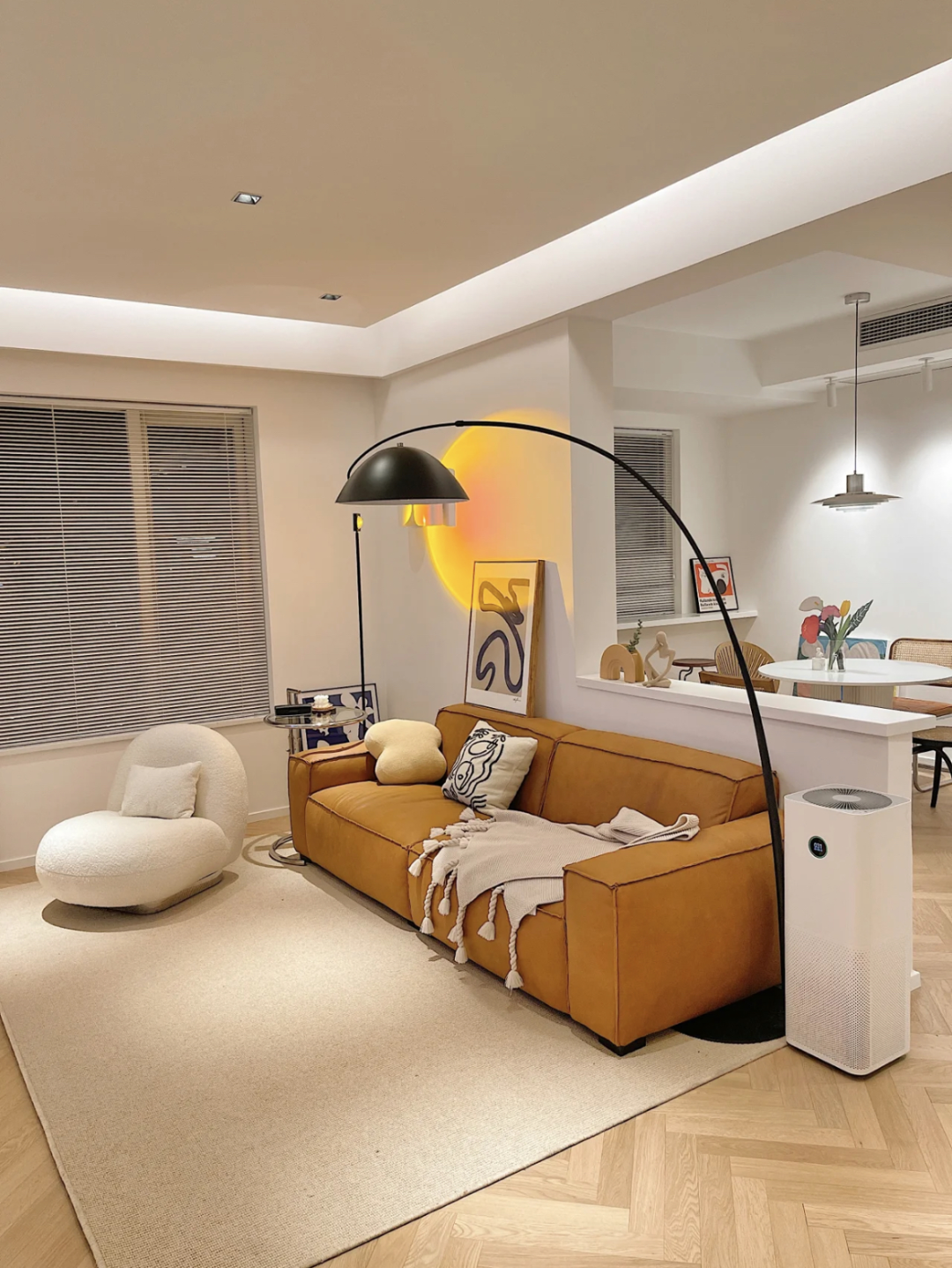 比如给地面铺上一张大地毯,就赋予了空间更多种变化。哪怕三两好友过来小聚,也不会因沙发体积小,而影响到正常的接待需求。同时,随性的生活姿态,还能让人从内心深处得到放松。
