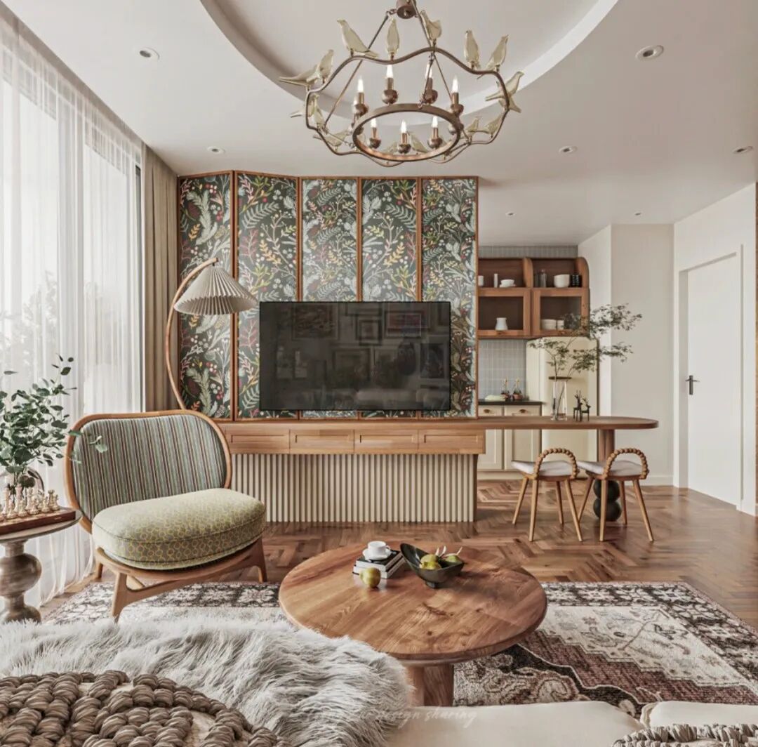 木材本身自带自然温润之美,加上材料较轻和镂空的设计,可以营造出古典、禅意、雅致的空间氛围,适合简约、中式、日式、北欧等风格,缺点是不防水不防潮。