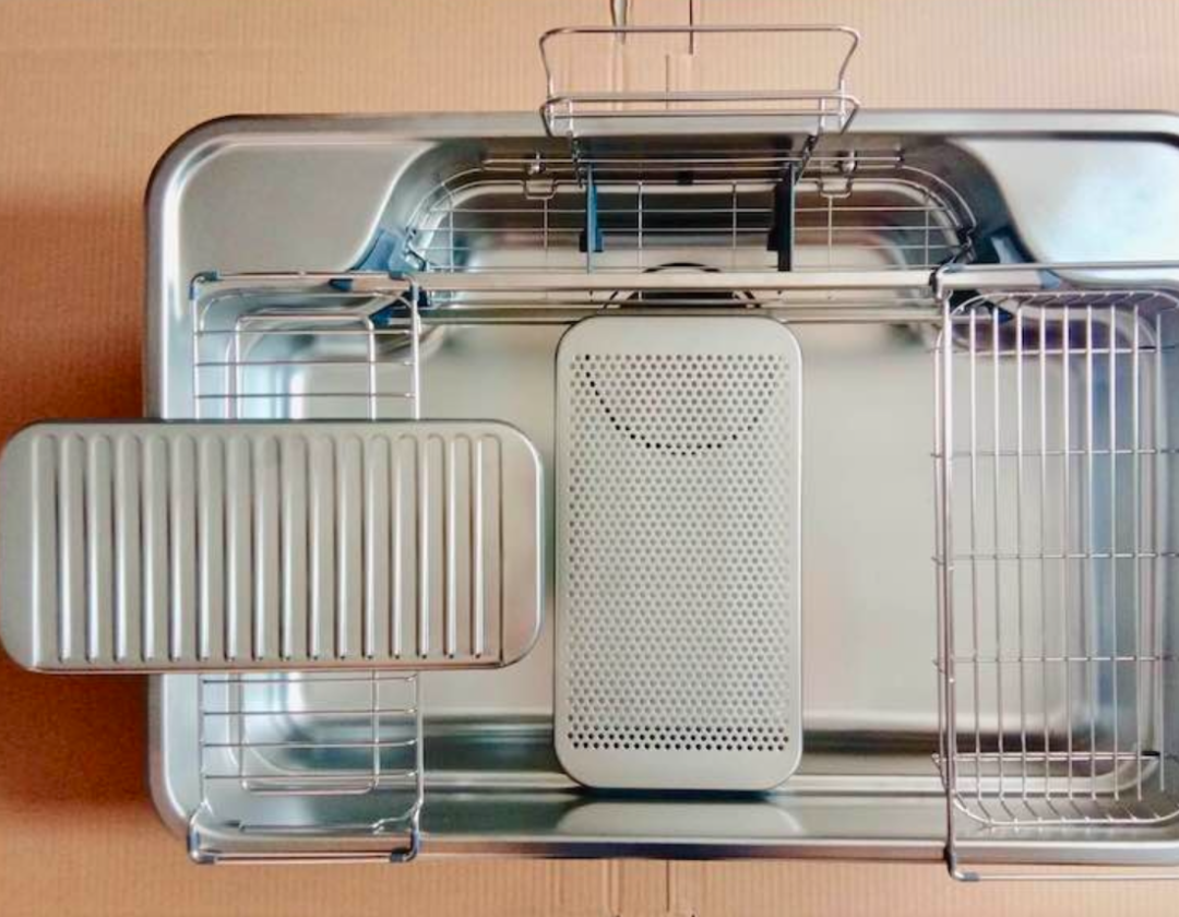 它最明显的特点是水槽内部有3层“阶梯”,用来放不同配件,比如说最下面放拉篮,中间是砧板,上层是沥水盘,洗菜、切菜、洗碗都能在水槽这里完成。