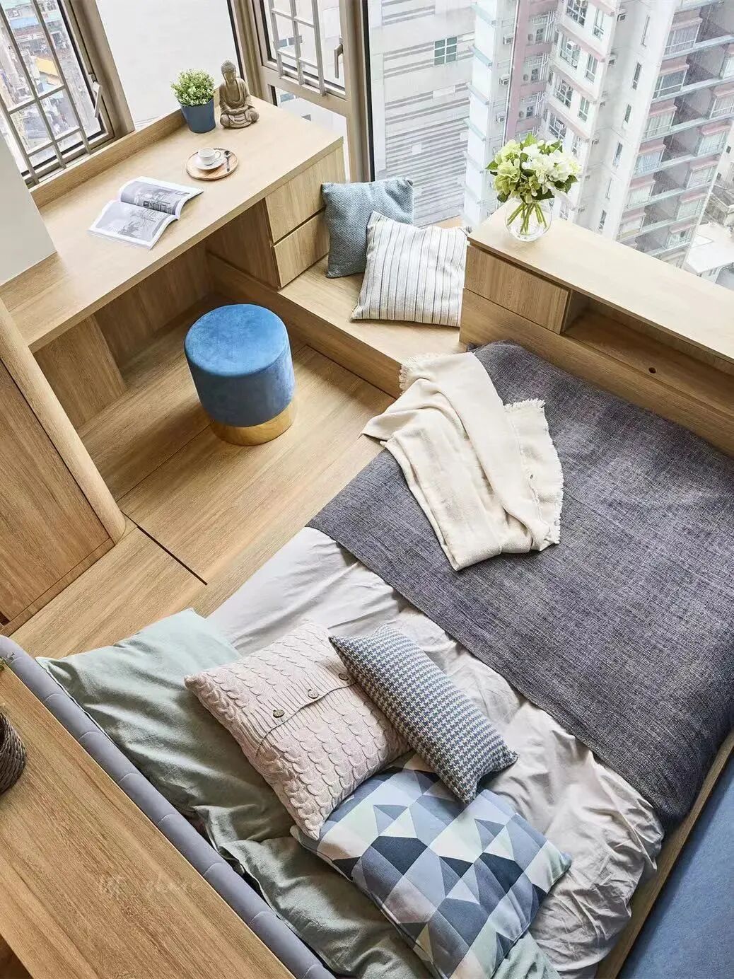 窗边装置地台,开始的幻想非常美好,地台上喝茶、看书,坐垫下面加储物箱。结果拿个东西还得先挪桌子,从下往上掏也太费腰了。最后徒劳占空间,使用不方便。