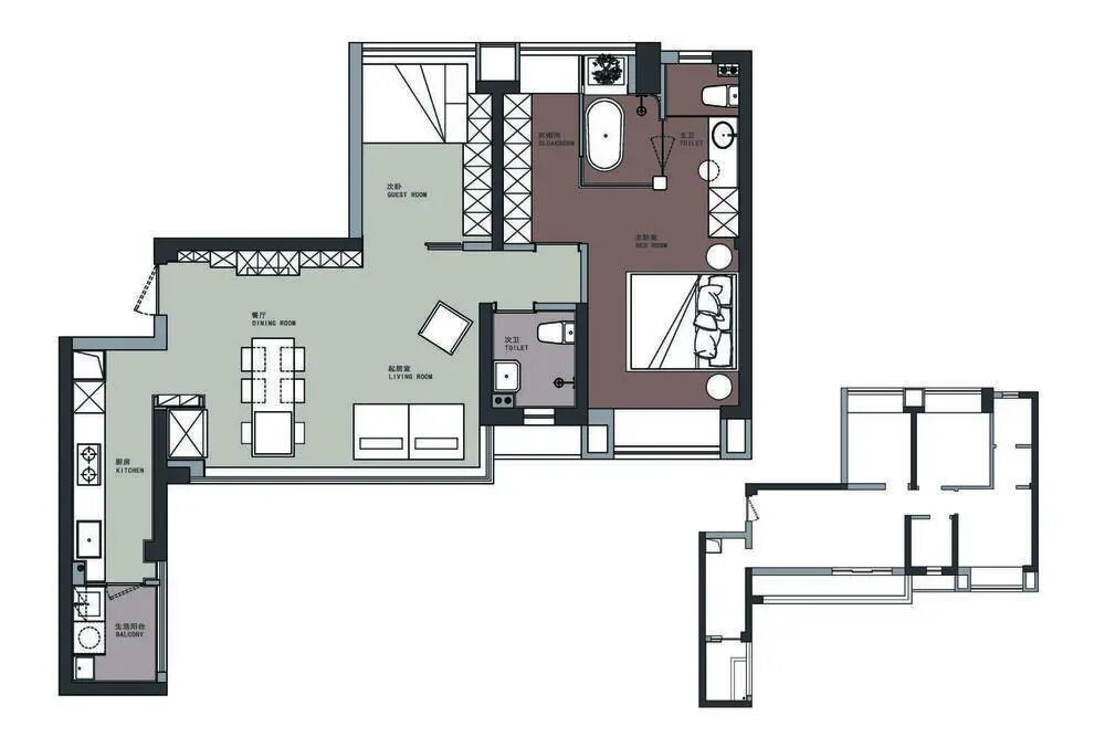 本案位于成都,面积80㎡,屋主Lora2018年找到了设计师为她设计新家,Lora说这套房是为自己打造的独立居所,父母很少过来,也不需要考虑结婚生子的居住状态,如果人员增添会购置更大的房子。