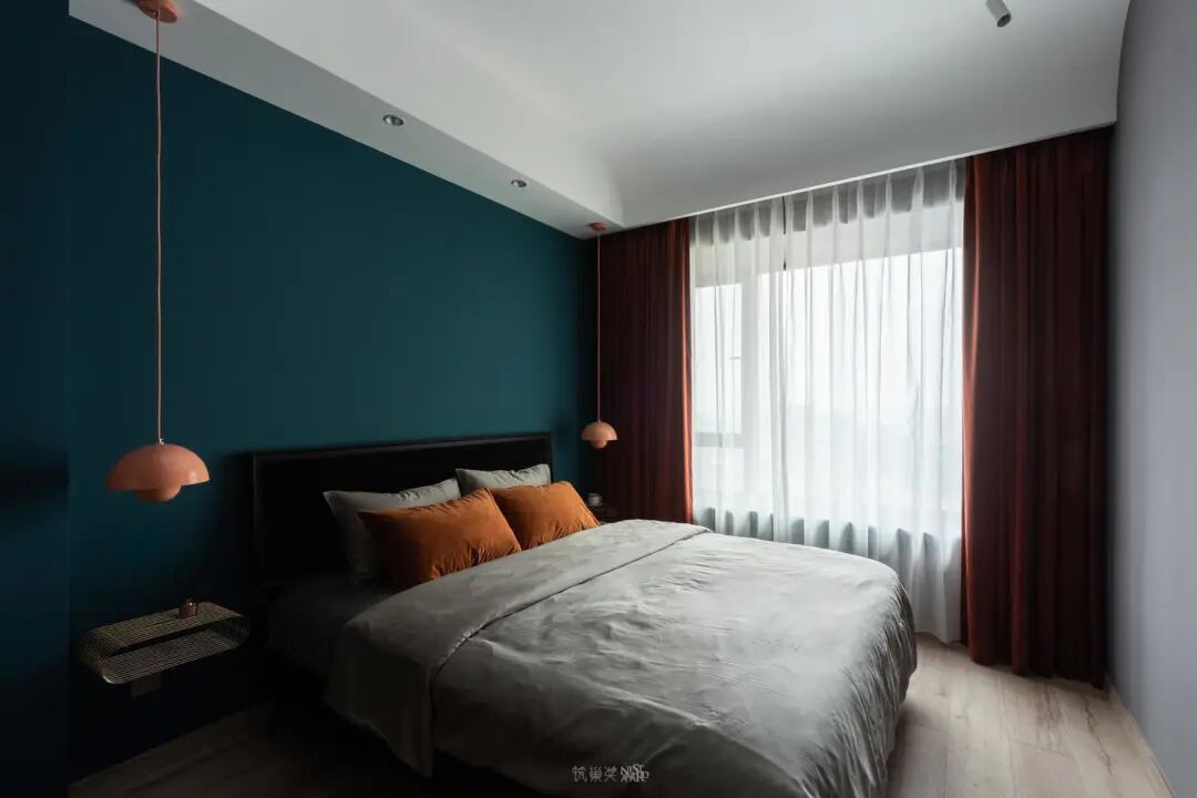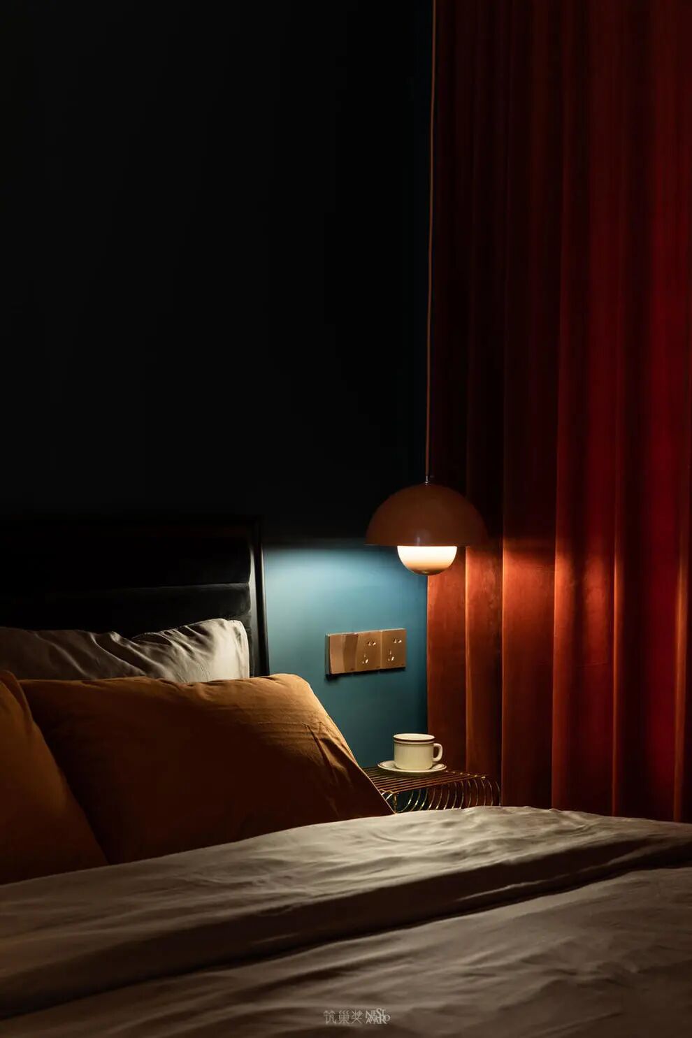 明暗有度,以色彩的围合形成一个好睡空间。睡前柔和的灯光氛围,亦是休息时光的安宁美好。