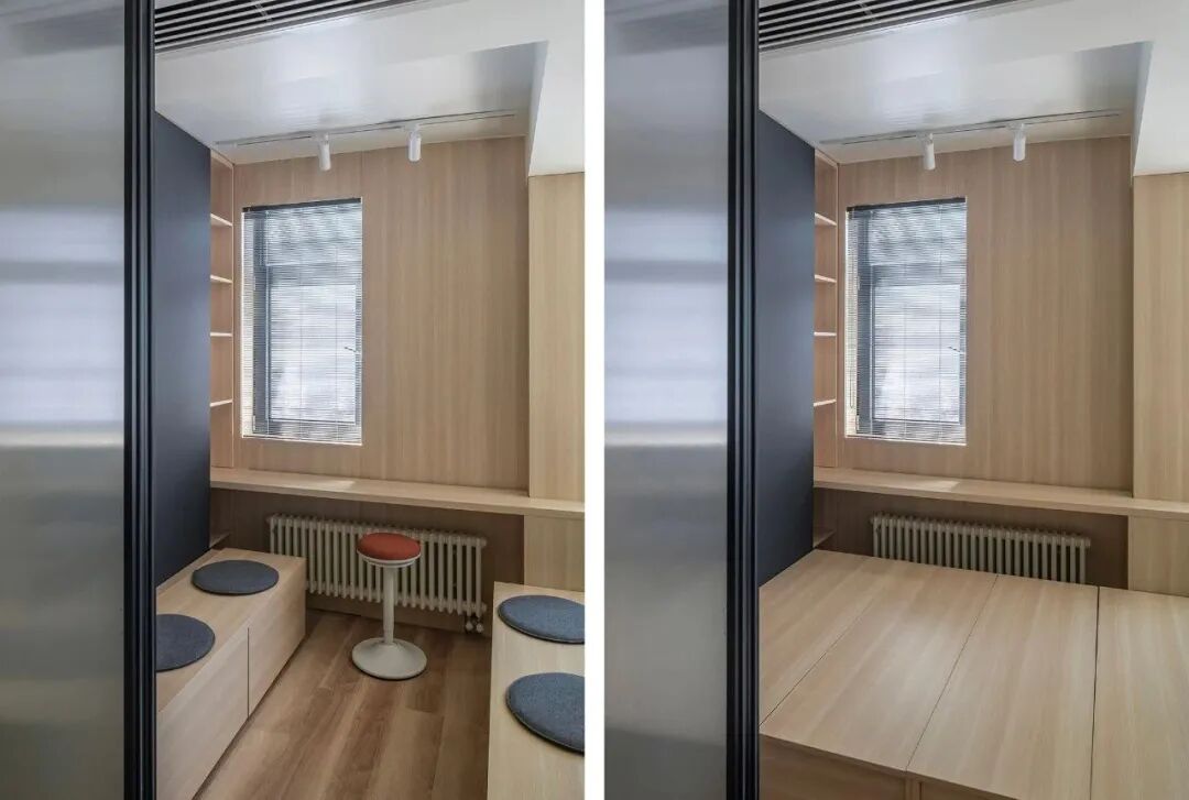 如果平时其他空间有需求,可以随时挪动,客厅作为茶水台、卧室作为床头柜都可以,什么时候来人就可以组合起来,用作床来休息。