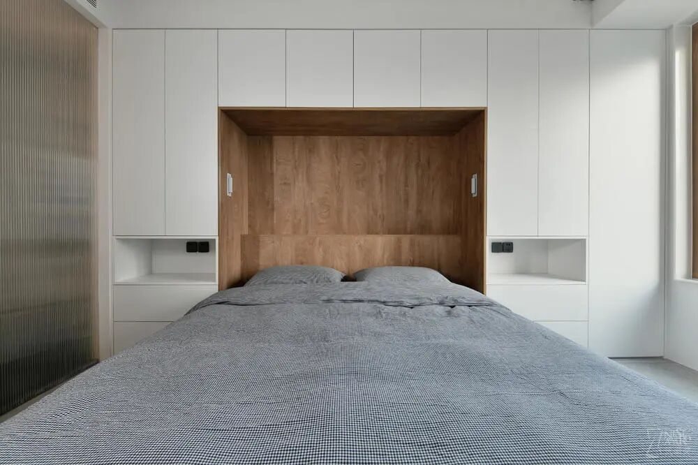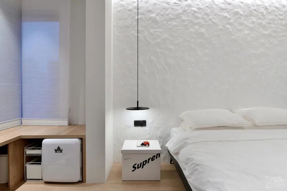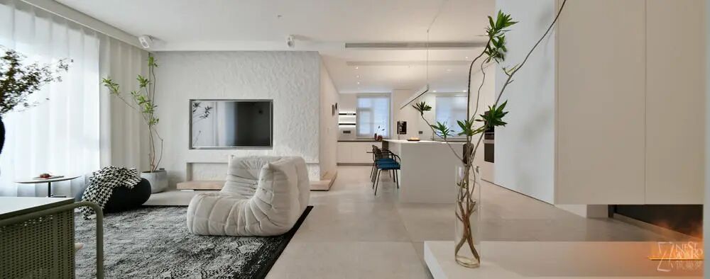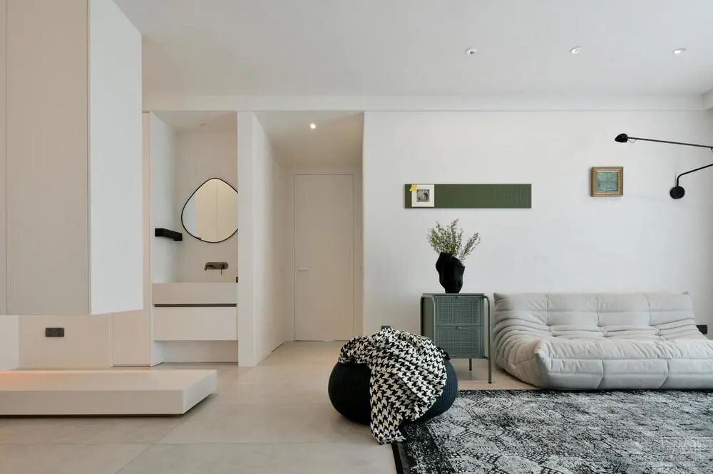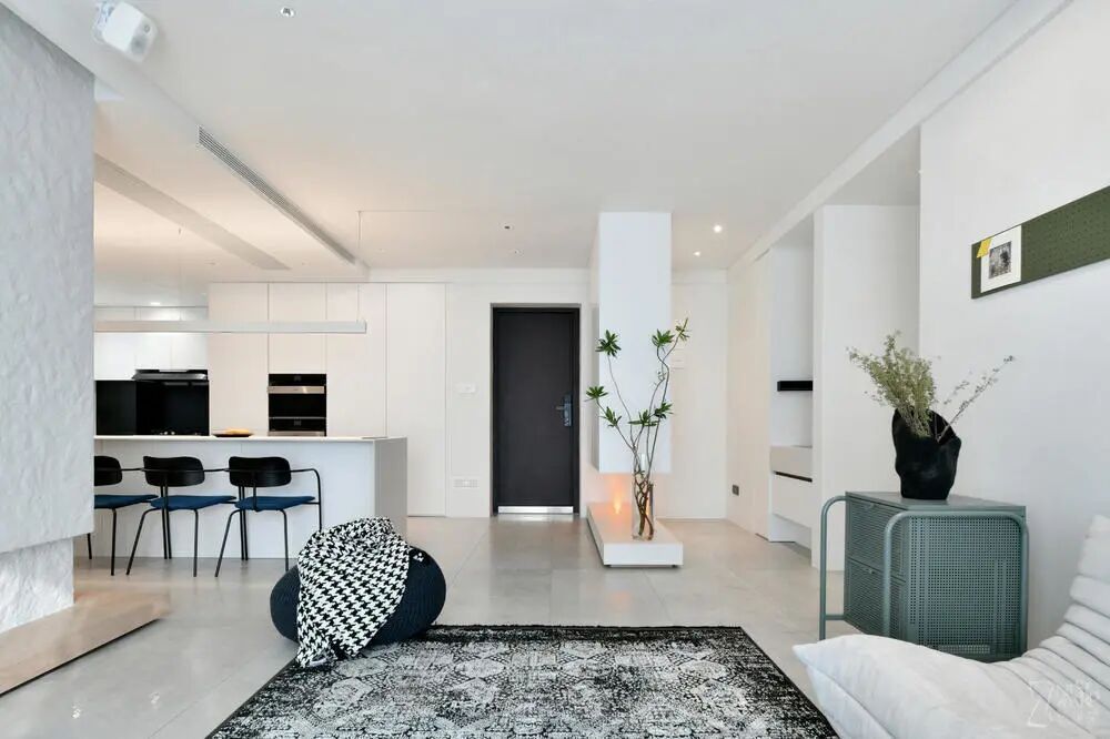 本案位于山西太原,面积100㎡。业主希望在这个空间能最大限度的满足生活需求,以纯白空间为主,甚至将门进行隐形消匿,一切以纯粹的简洁为主,追寻身心的放松和纯净。设计师将原始结构进行最大化的拆改,开放式的生活空间,将储物隐藏于设计中。