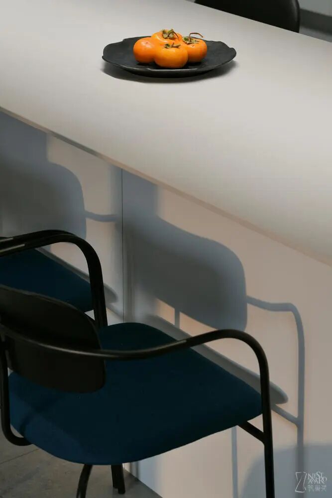 一直在寻找一种可以触摸生活的方式,在某一个场景下,穿越过去未来。 灰蓝色地椅子在通透流动的整个空间里也是遥相呼应,带给空间一种睿智与安逸的灵动。不多不少,却恰到点缀。