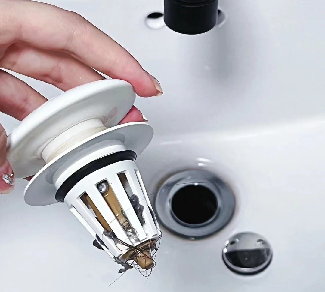 装修时,如果安装好了洗手盆,一定先将老式翻转下水器更换成弹跳下水器,可以很好地防止毛发堆积堵塞管道。