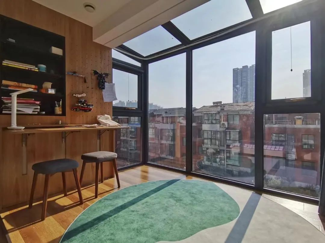 前段时间五一回县城发现隔壁邻居家建了阳光房,于是特意去参观了一下!虽然北方本身还没有达到30几度的高温,但阳光还是很充足的,进去之后并没有想象中的闷热,里面还安装了空调,而且两侧一边是折叠门、一边是长窗,形成的过堂风真的很舒服,相比室外是可以避暑的程度!