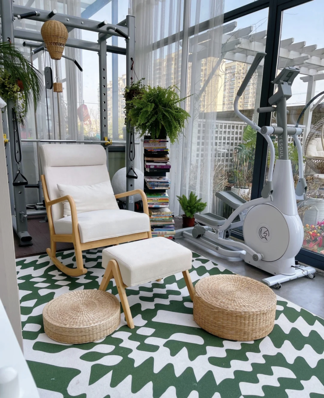 问了一下,前后安装布置花费了4W多,除了极高温的一个多月以外,上面安装了遮光帘,使用率还是很高的(南方夏天相对会更热),在里面看书、做做运动真的很爽!