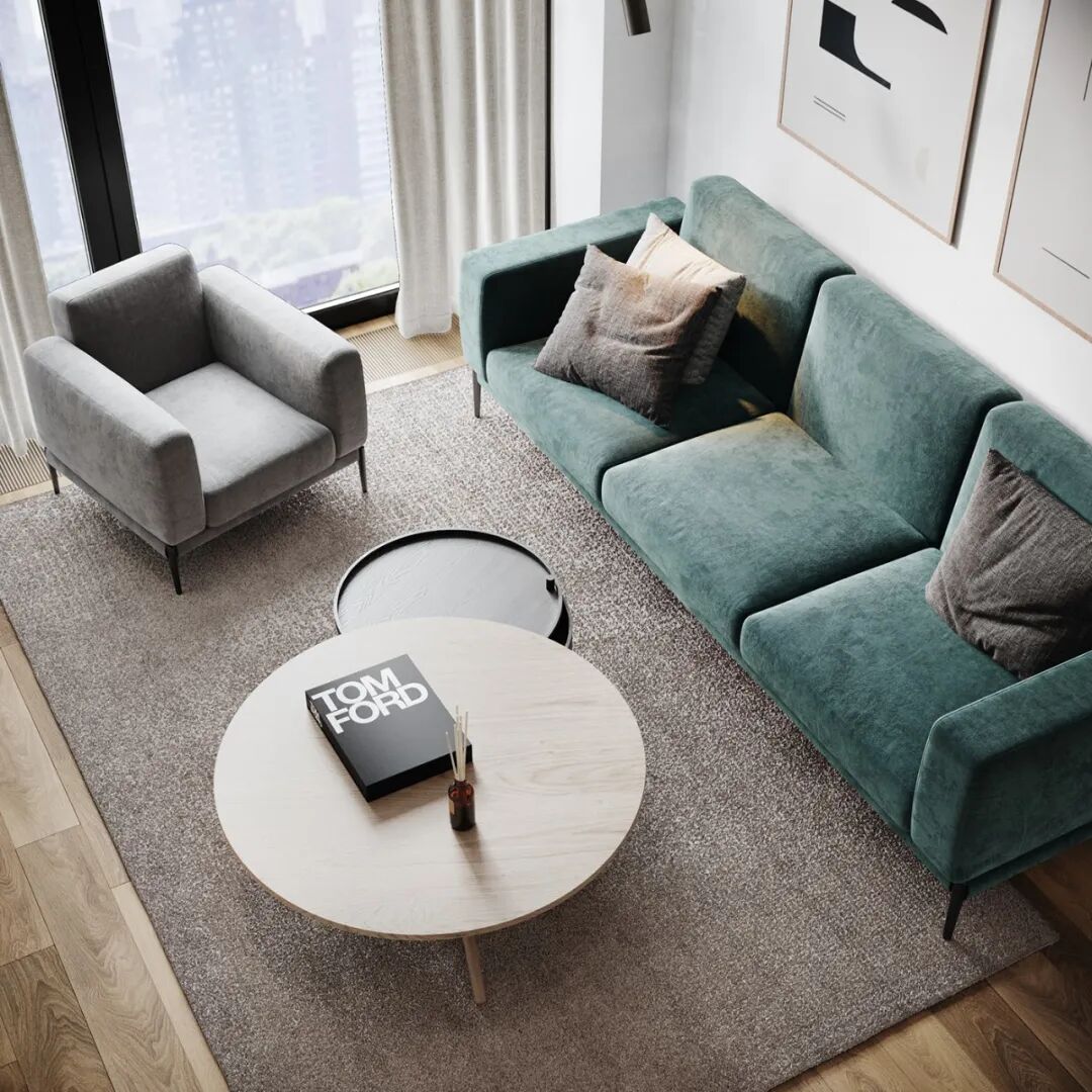 整个客厅没有复杂的装饰,一套湖绿色沙发搭配灰色绒面地毯、木质圆形茶几,让空间显得格外的闲适又不乏活力。天气好的时候,房主一家4口在这里玩耍晒太阳也是极好的,一家人相依相伴,原来,生活可以如此简单美好。