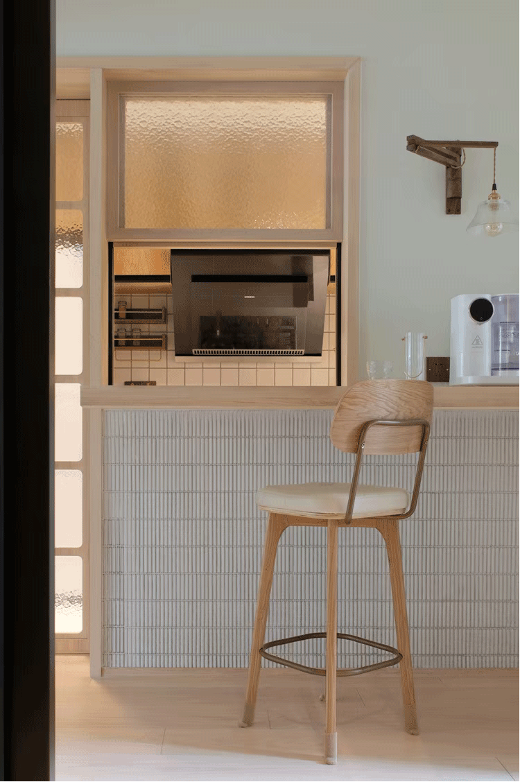 这样一个小小的设计,不仅优化了餐厨动线,让空间格局更通透,还在无形中增加了空间的互动性,促进交流,可谓一举多得。
